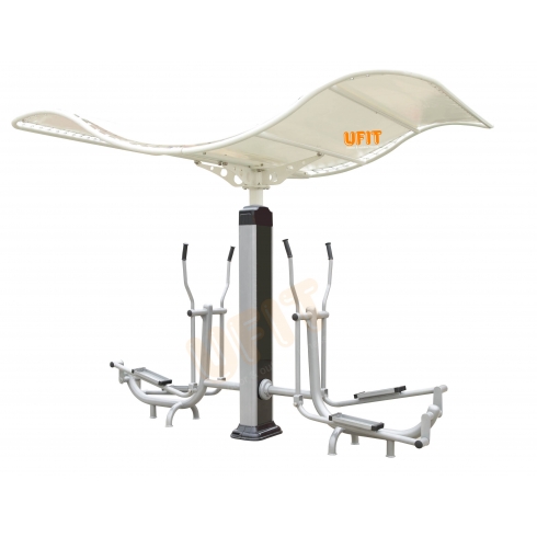 Thiết bị tập thể dục ngoài trời cho công viên đi bộ lắc tay có mai che là dòng thiết bị tập chuyên sâu rèn luyện sức mạnh của tay/chân và các khớp hông/ khớp gối, tăng cường độ dẻo dai của các nhóm cơ bắp và lưu thông khí huyết được lắp ráp tại các công viên và khu luyện tập thể dục thể thao công cộng, khuôn viên gia đình.được làm bằng thép chống rỉ, được gắn cố định xuống nền có mai che được làm từ bạt châu âu sử dụng cho 2 người tập cùng lúc